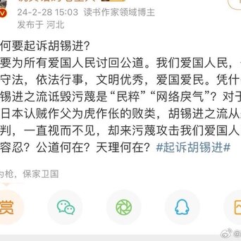 #莫言# #莫言[超话]# #胡锡进称起诉莫言者是在扣帽子断章取义#