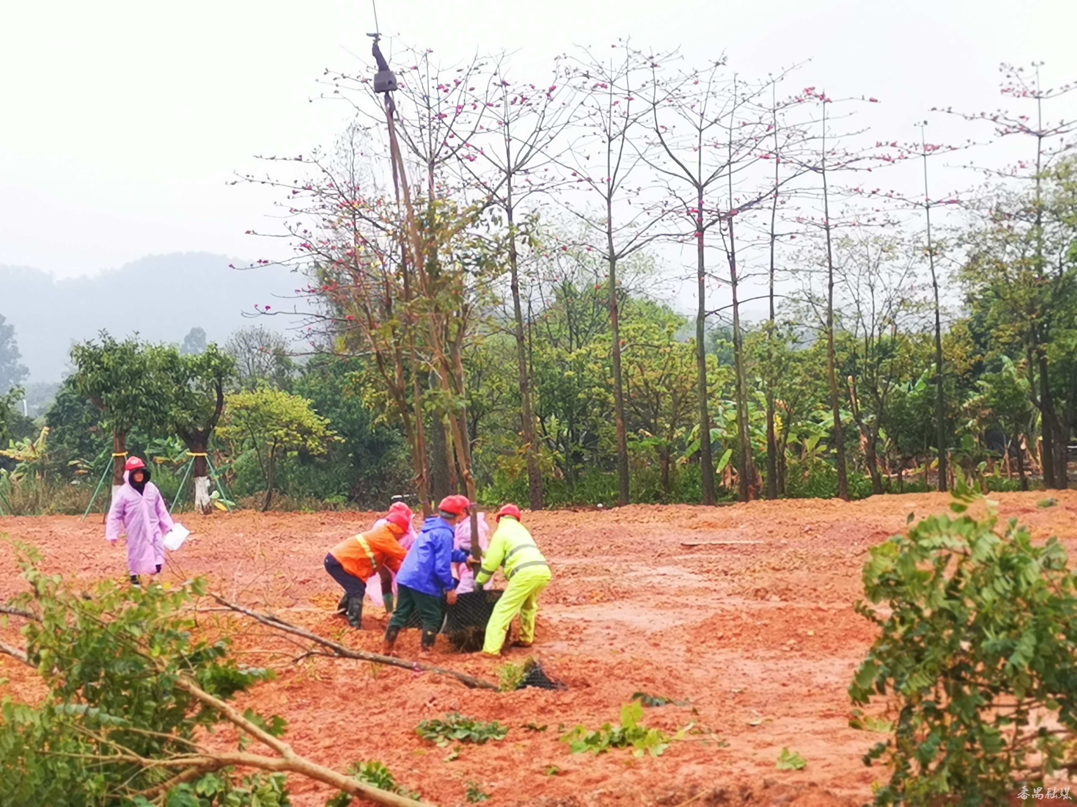 3月10日上午,春雨绵绵。记者在佛莞城际广州莲花山站看到,车站的主体建筑已经完成,室内室外进行了装修,建筑外立面为白色。车站设有进站口、出站口、售票处;车站大厅里面设有检票口,卫生间、值班室等,电子显示屏上滚动播放“广州莲花山站欢迎您”。走出检票口就是站台,通往车站的铁轨醒目可见。在车站外面的莲花路旁,有一片面积上千平方米的闲置地,番禺区市政园林绿化单位正在植树,大货车运来的好几车树苗,品种有宫粉紫荆、火焰木、黄花风铃木、细叶榕、大叶榕等。绿化工作人员表示,为配合佛莞城际铁路正式开通运行,现在抓紧对莲花山站周边进行绿化美化,这次在车站外面的地块种植500多棵树,提升旅客的候车环境。