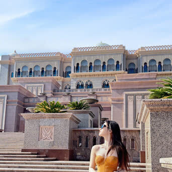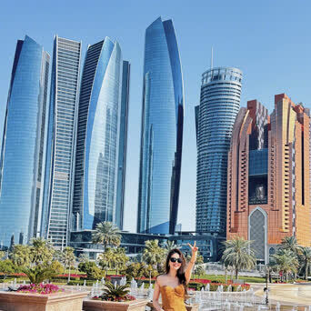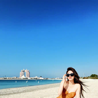 刘亦菲晒阿布扎比随拍,穿橘色抹胸裙,明媚热辣