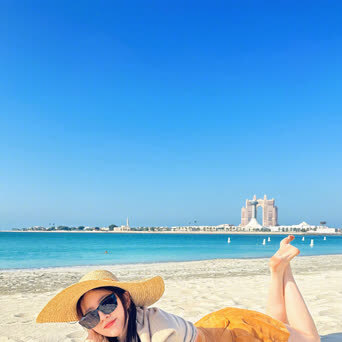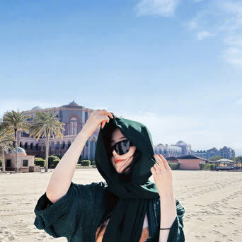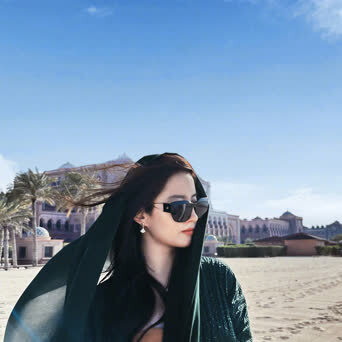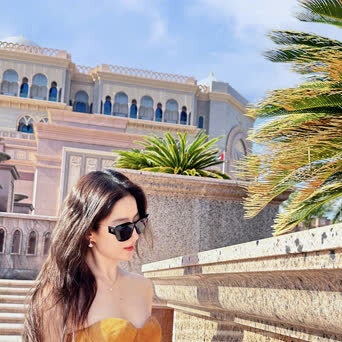 刘亦菲晒阿布扎比随拍,身穿橘色抹胸裙搭配黑色纱巾,身材完美,明媚热辣。