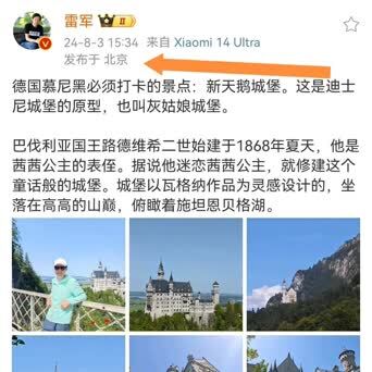 雷军去法国看完奥运开幕式,参观游览了当地景点后,又去德国了。 只不过